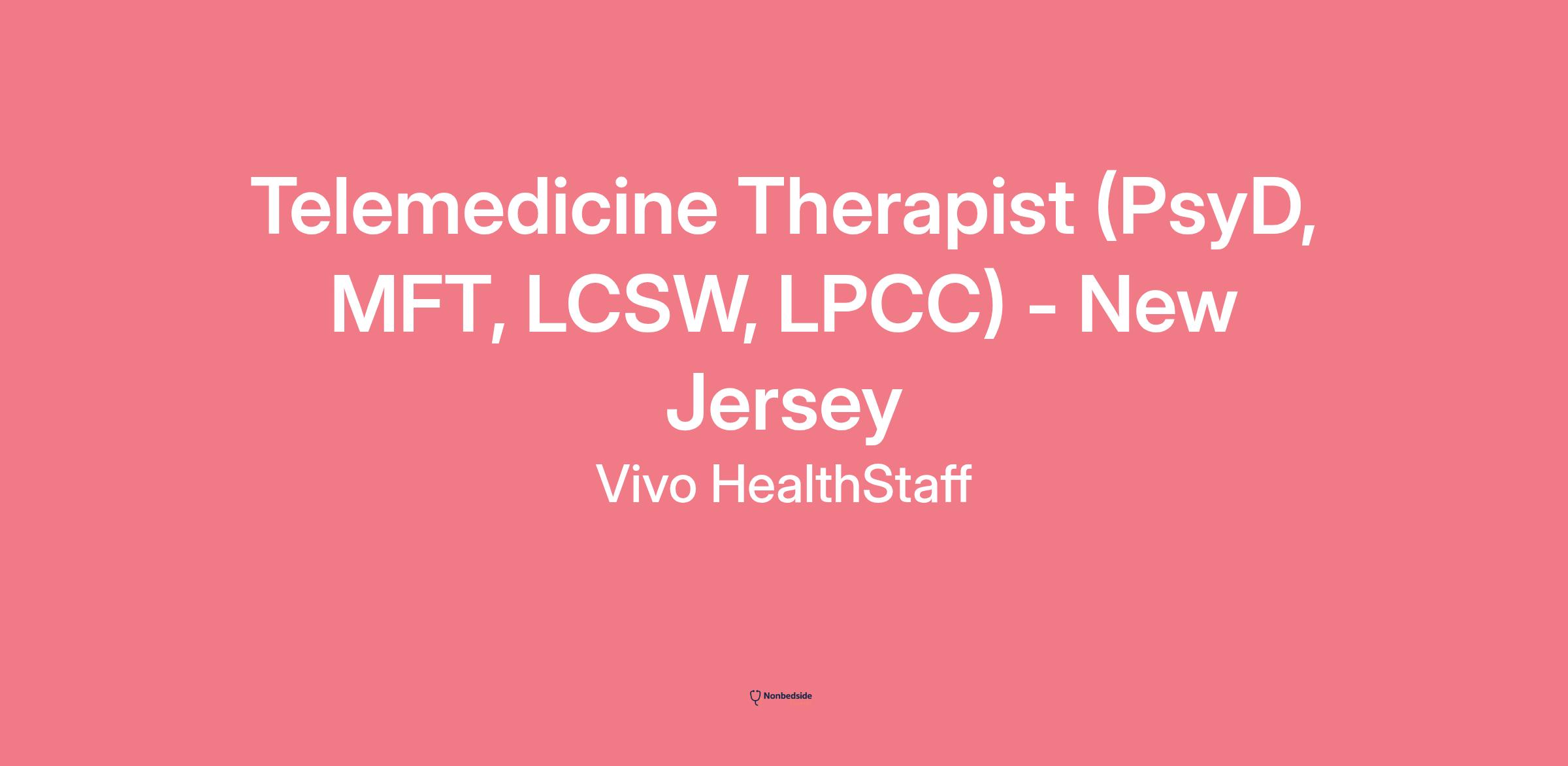 Vivo HealthStaff is hiring a Telemedicine Mental Health Therapist with active licensure in New Jersey.