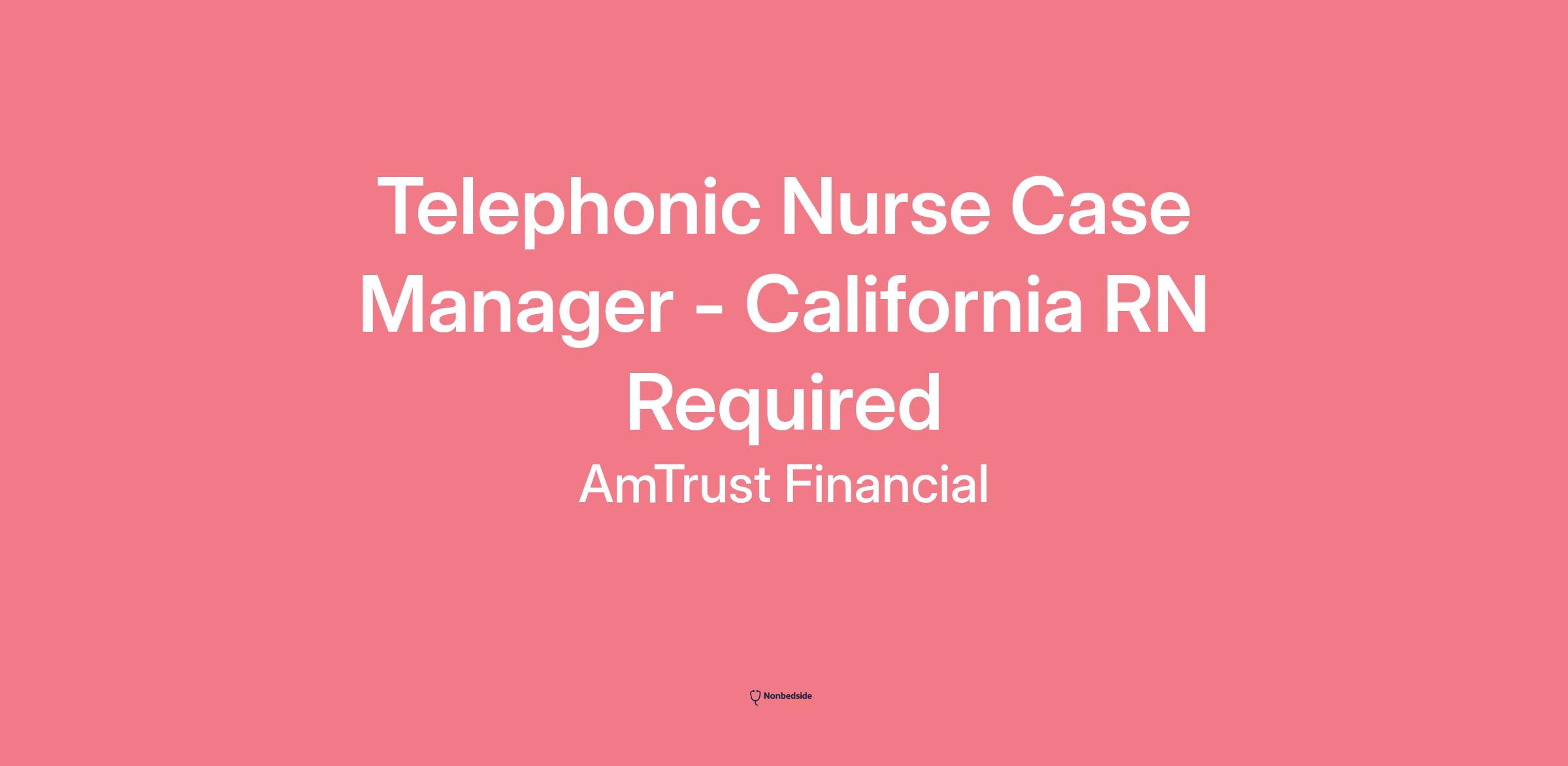 AmTrust Financial Services, a fast growing commercial insurance company, has a need for a Telephonic Medical Case Manager, RN.