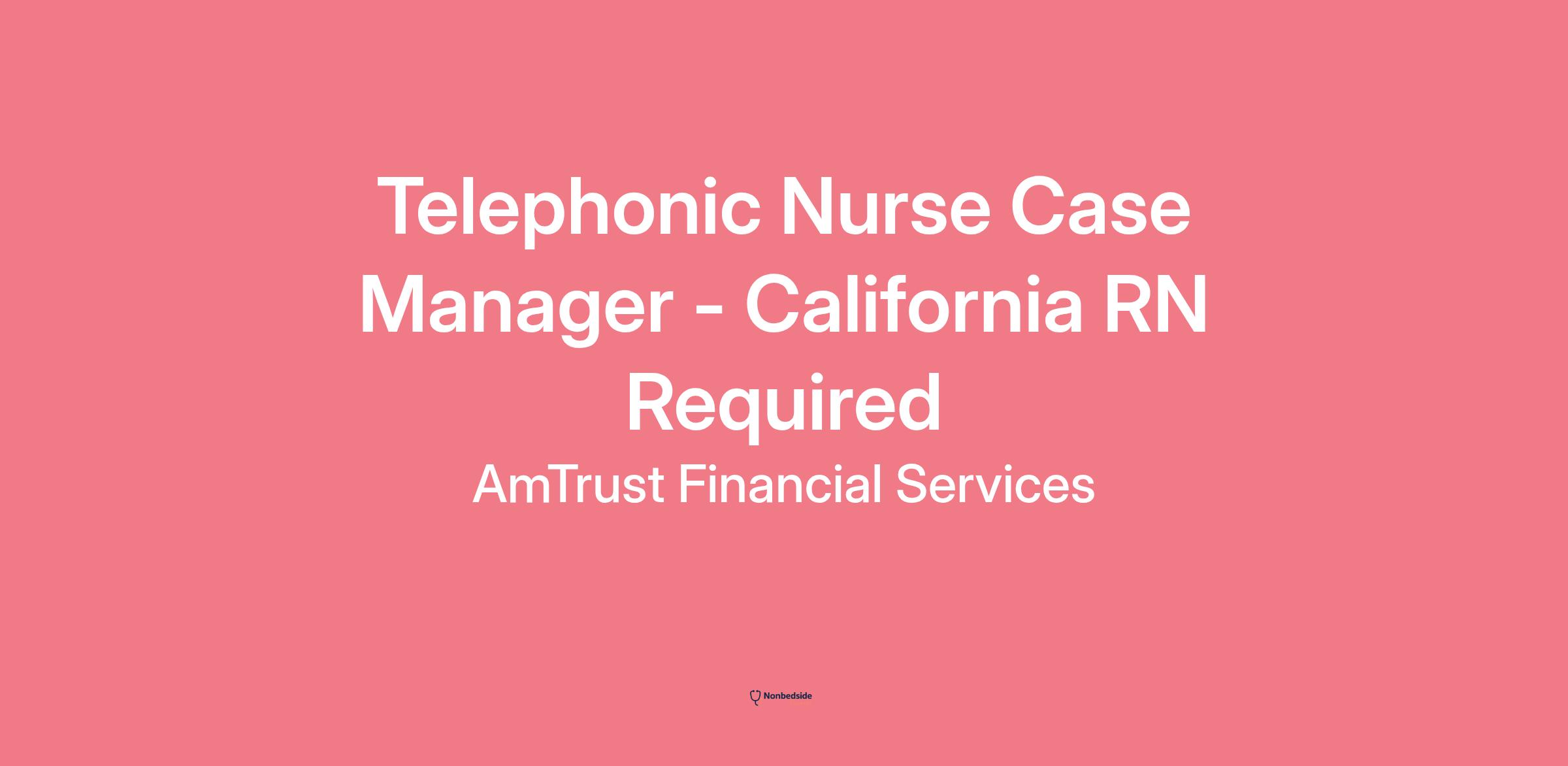 AmTrust Financial Services, a fast growing commercial insurance company, has a need for a Telephonic Medical Case Manager, RN.