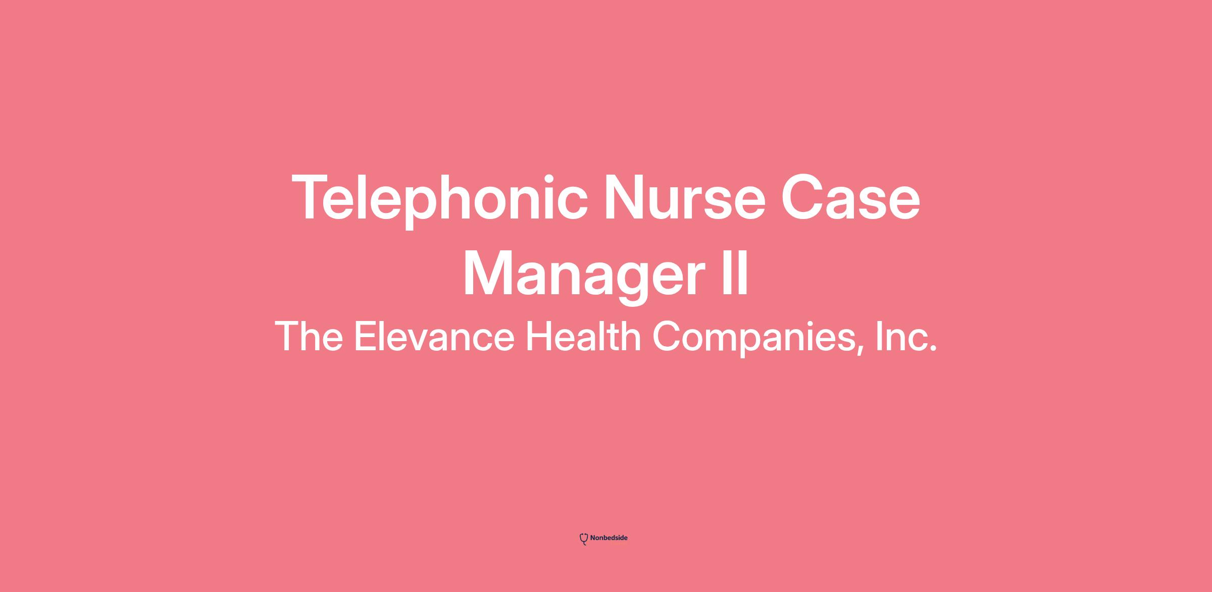 The Telephonic Nurse Case Manager II is responsible for performing care management within the scope of licensure for members with complex and chronic care needs by assessing, developing, implementing, coordinating, monitoring, and evaluating care plans designed to optimize member health care across the care continuum. Performs duties telephonically.