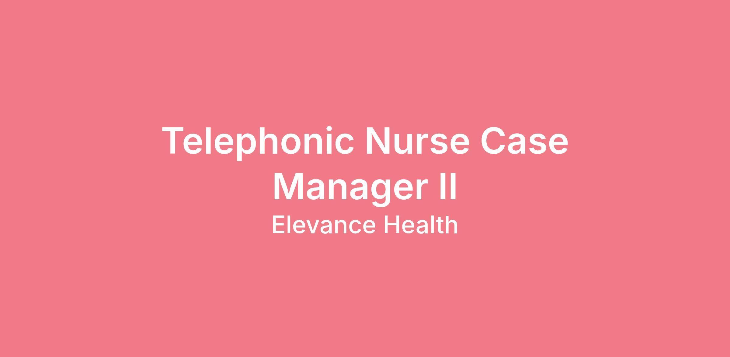 The Telephonic Nurse Case Manager II is responsible for care management within the scope of licensure for members with complex and chronic care needs by assessing, developing, implementing, coordinating, monitoring, and evaluating care plans designed to optimize member health care across the care continuum. Performs duties telephonically.