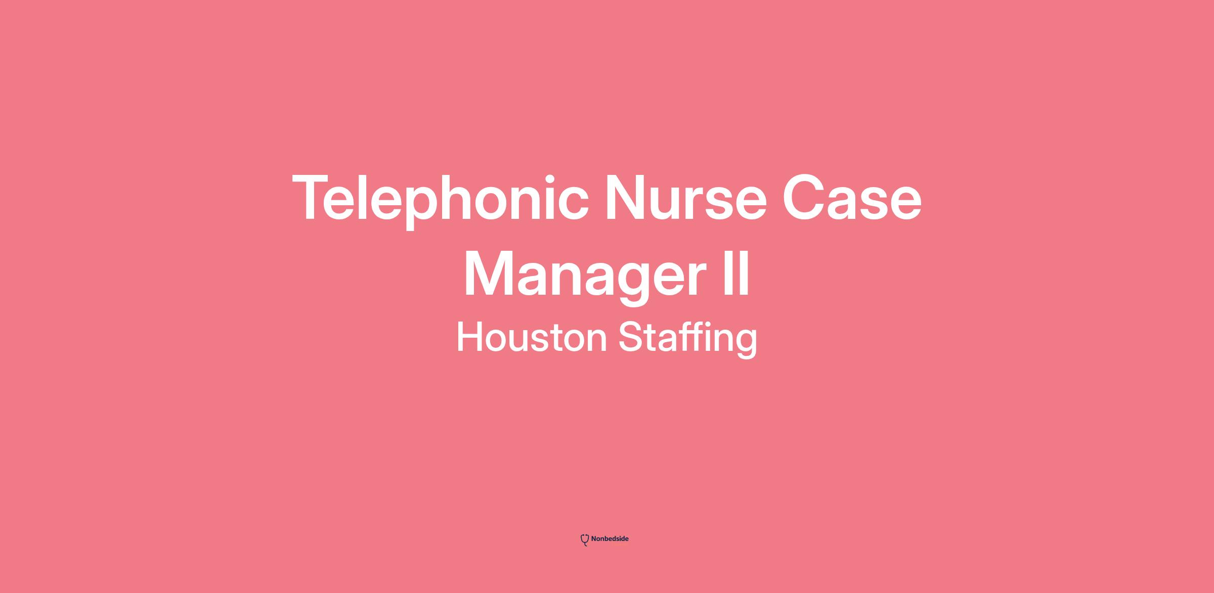 The Telephonic Nurse Case Manager II is responsible for care management within the scope of licensure for members with complex and chronic care needs by assessing, developing, implementing, coordinating, monitoring, and evaluating care plans designed to optimize member health care across the care continuum. Performs duties telephonically.