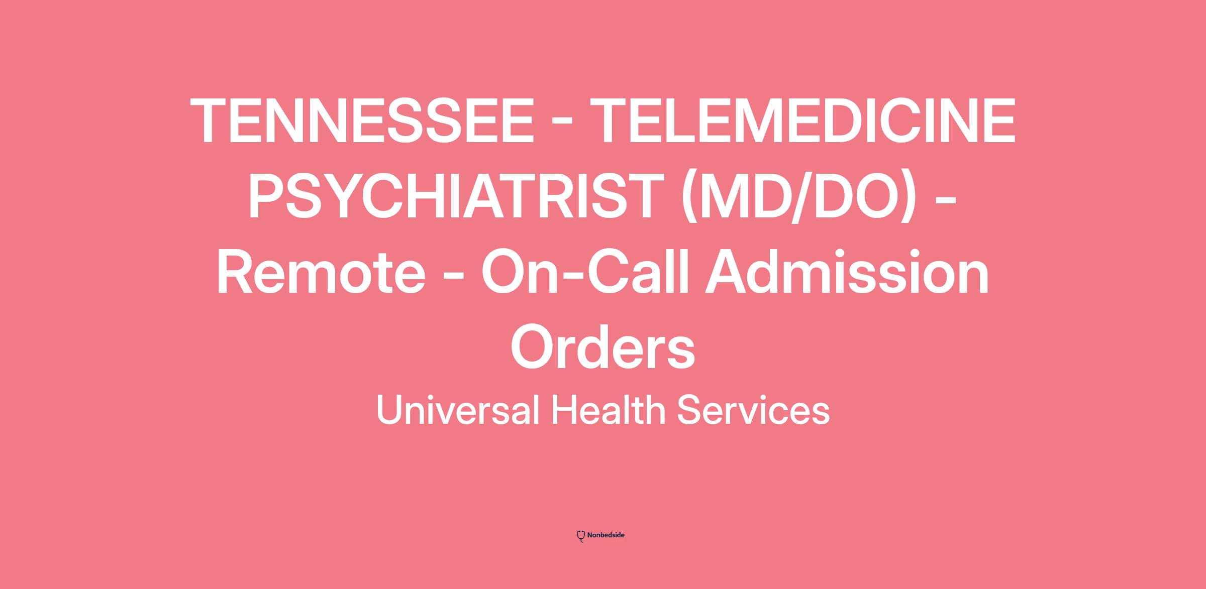 HealthLinkNow is currently hiring Telemedicine Psychiatrists/Residents - Tennessee. This position will be primarily - Telephone On-Call coverage for Admissions.