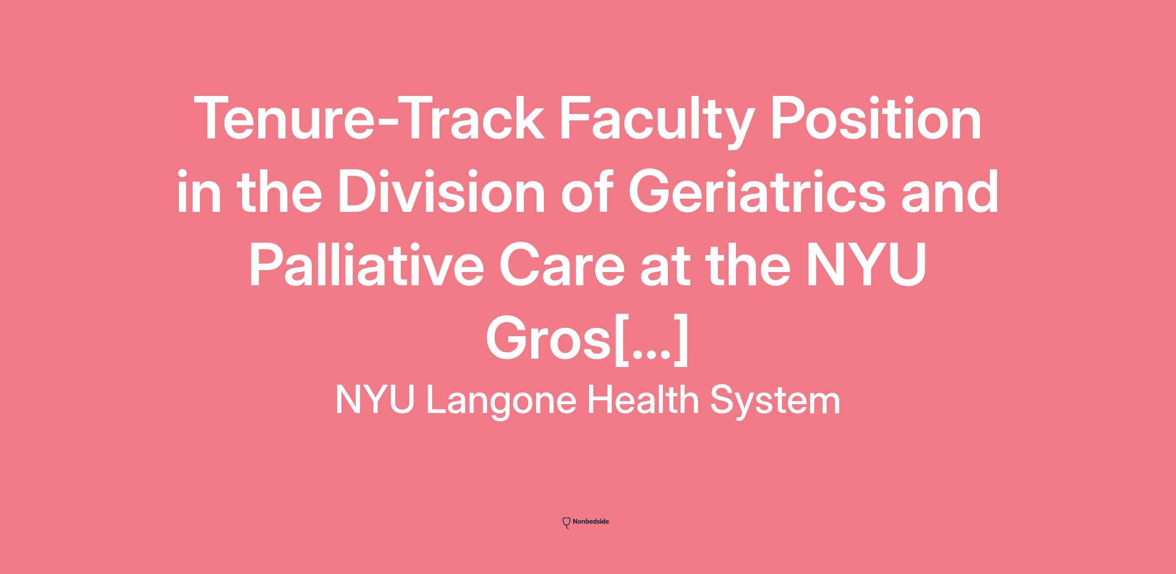 This is an exciting opportunity to join a nationally-recognized division (ranked #3 in Geriatrics in US News & World Report) and contribute to continued growth of the Division's Freedman Research Center on Aging, Technology, and Cognitive Health (CATCH), which currently boasts over a $12,000,000 research portfolio https://med.nyu.edu/departments-institutes/medicine/divisions/geriatric-medicine-palliative-care/.