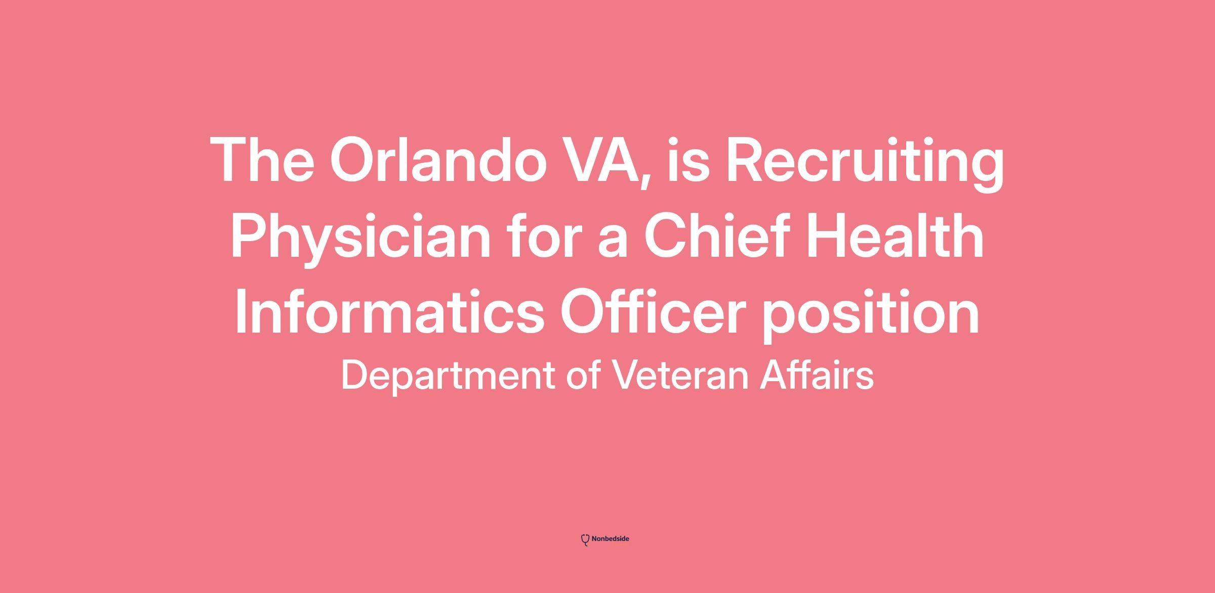 Sunny Orlando, FL Seeks Chief Health Informatics Officer.