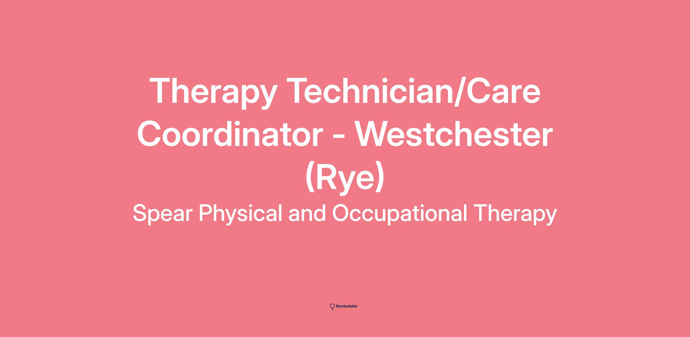 Spear Physical and Occupational Therapy is seeking a qualified, passionate Therapy Technician/Care Coordinator to join the team at our Rye location in Westchester.