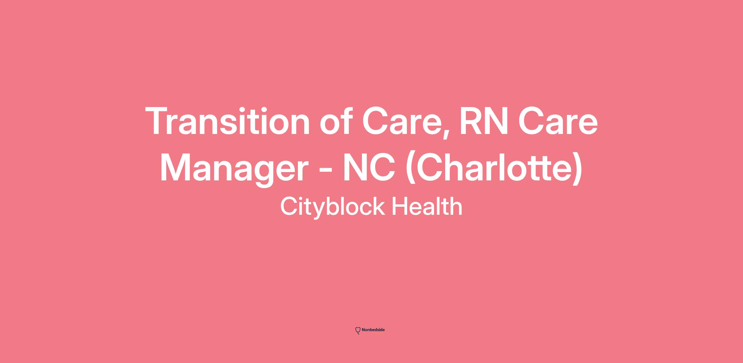 Cityblock's Transition of Care (TOC) program helps members safely navigate their post-discharge journey from acute care and hospital settings back into the community. The TOC Registered Nurse Care Manager (RNCM) coordinates with hospital case managers to determine members' needs and to complete discharge visits (in-home or virtual) with members and providers. The TOC RNCM will also be available for referrals to triage members' needs and provide clinical education, with the goal of helping ensure that members do not return to the hospital.