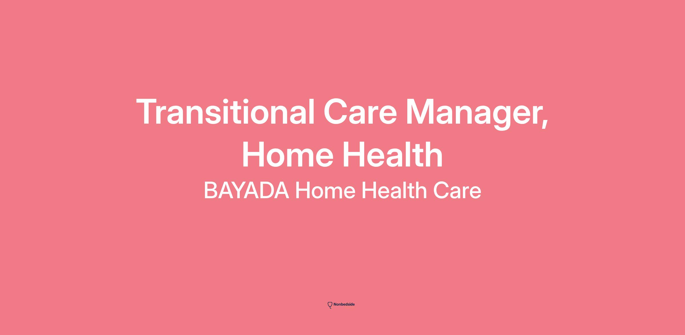 BAYADA Home Health Care's Tri- County Sales Team is currently seeking a Transitional Care Manager (TCM). Clinical Liaisons / TCMs at BAYADA interact with discharge planners, case managers, and clients and families at designated facilities to coordinate the initiation of home health care services.