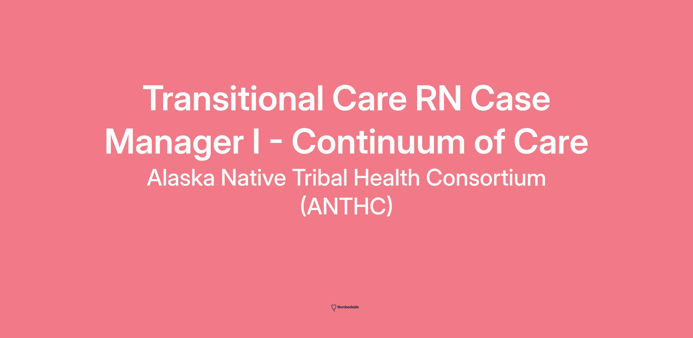 Join to apply for the Transitional Care RN Case Manager I - Continuum of Care role at Alaska Native Tribal Health Consortium (ANTHC).