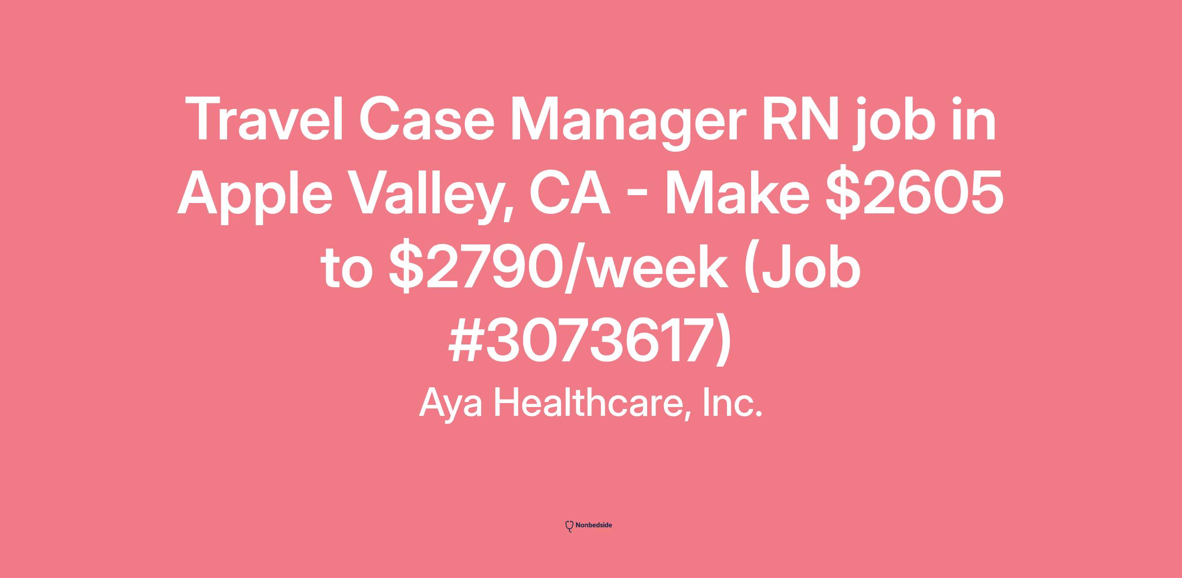 Aya Healthcare has an immediate opening for the following position: Case Manager Registered Nurse in Apple Valley, CA.