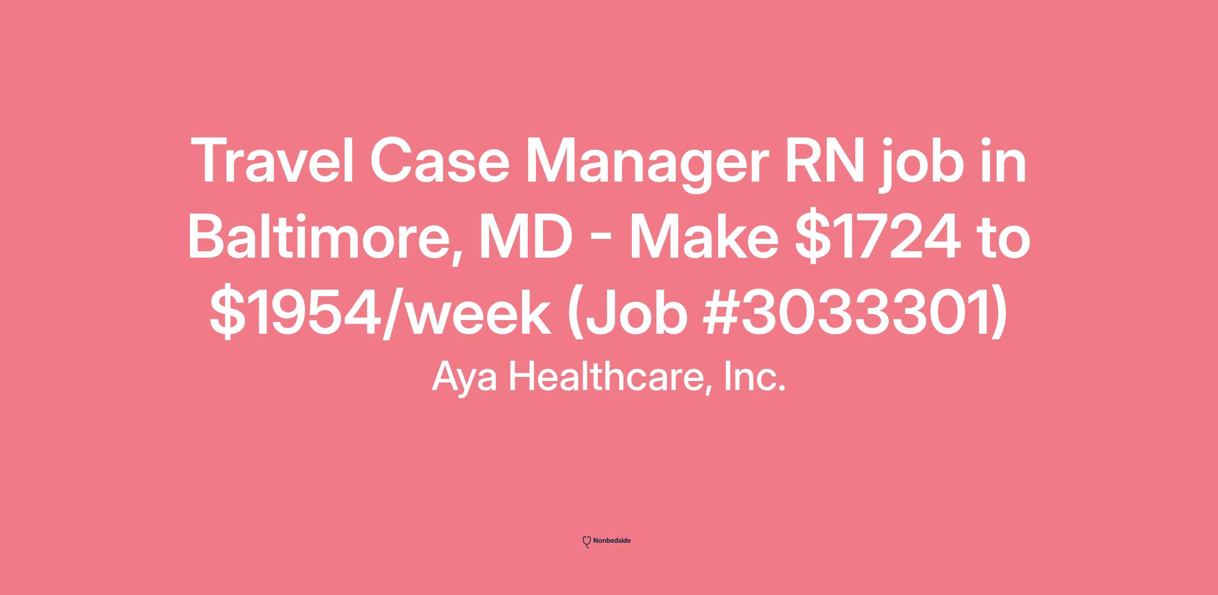 Aya Healthcare has an immediate opening for the following position: Case Manager Registered Nurse in Baltimore, MD.