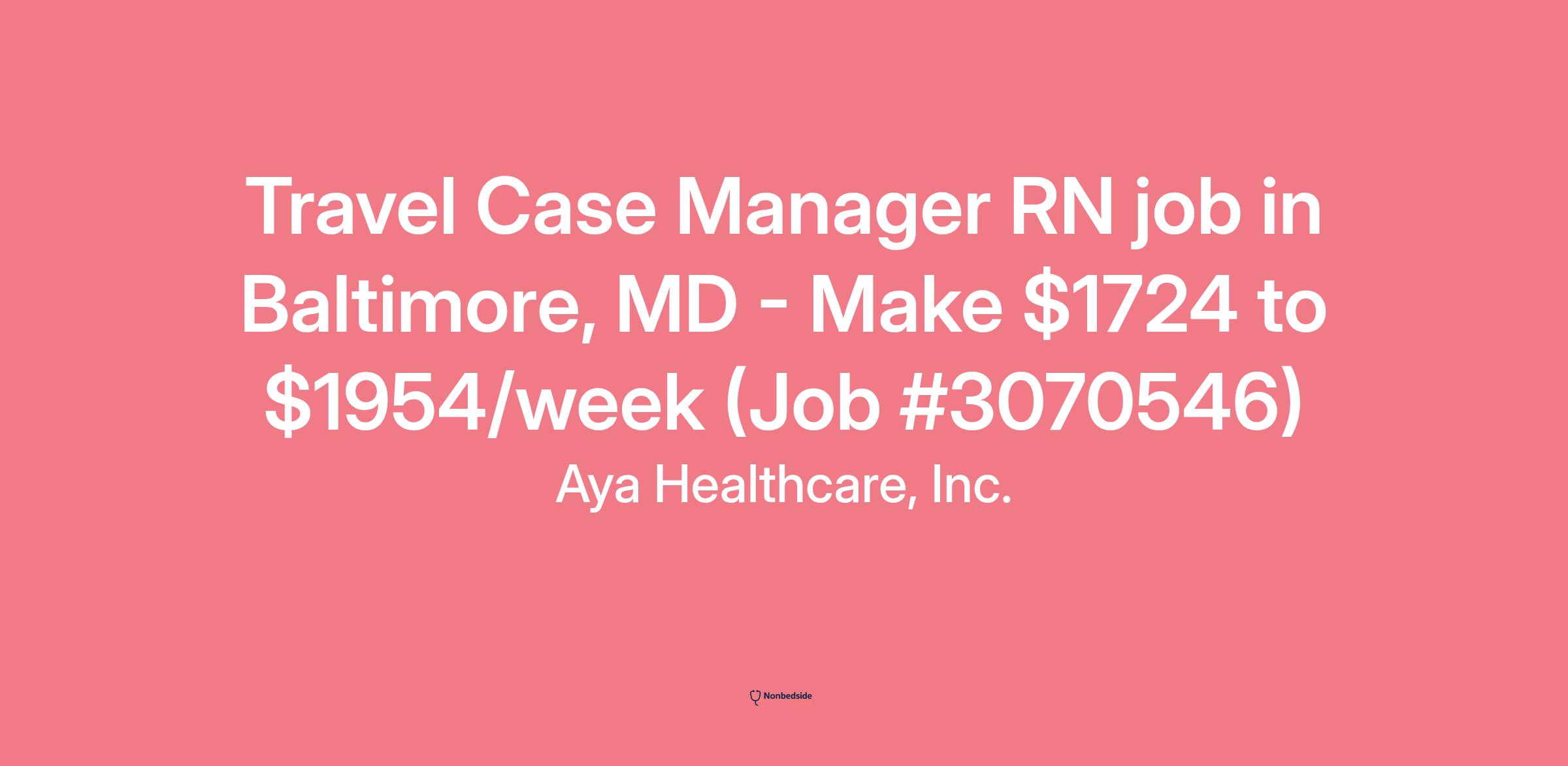 Aya Healthcare has an immediate opening for the following position: Case Manager Registered Nurse in Baltimore, MD.