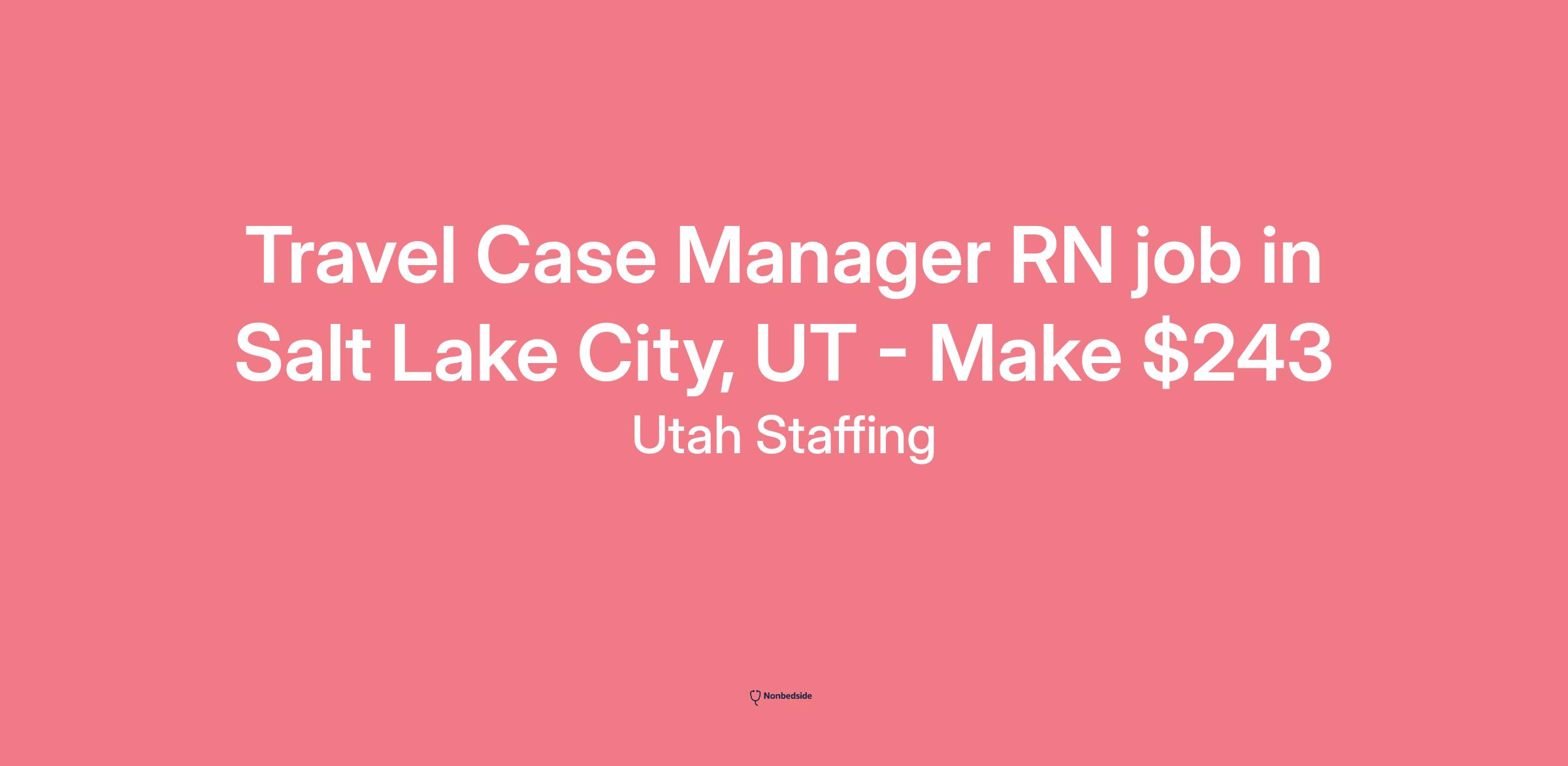 Aya Healthcare has an immediate opening for the Case Manager Registered Nurse in Salt Lake City, UT. We'll work with you to build the healthcare career of your dreams. Whether you want a job close to home or across the country, we've got you.
