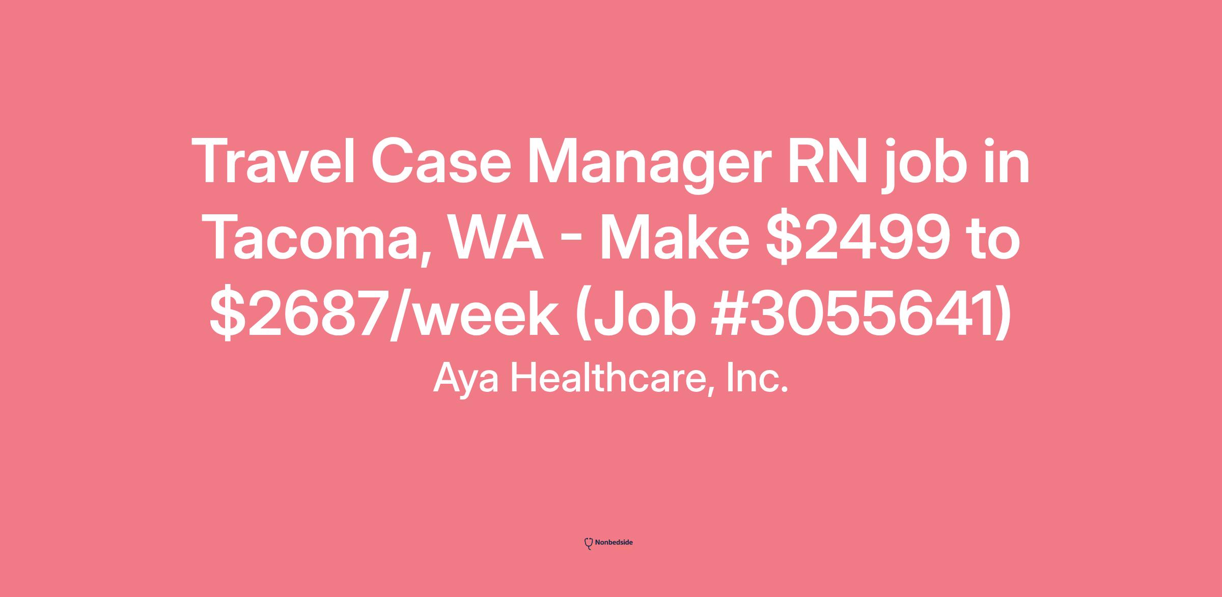 Overview Aya Healthcare has an immediate opening for the following position: Case Manager Registered Nurse in Tacoma, WA.