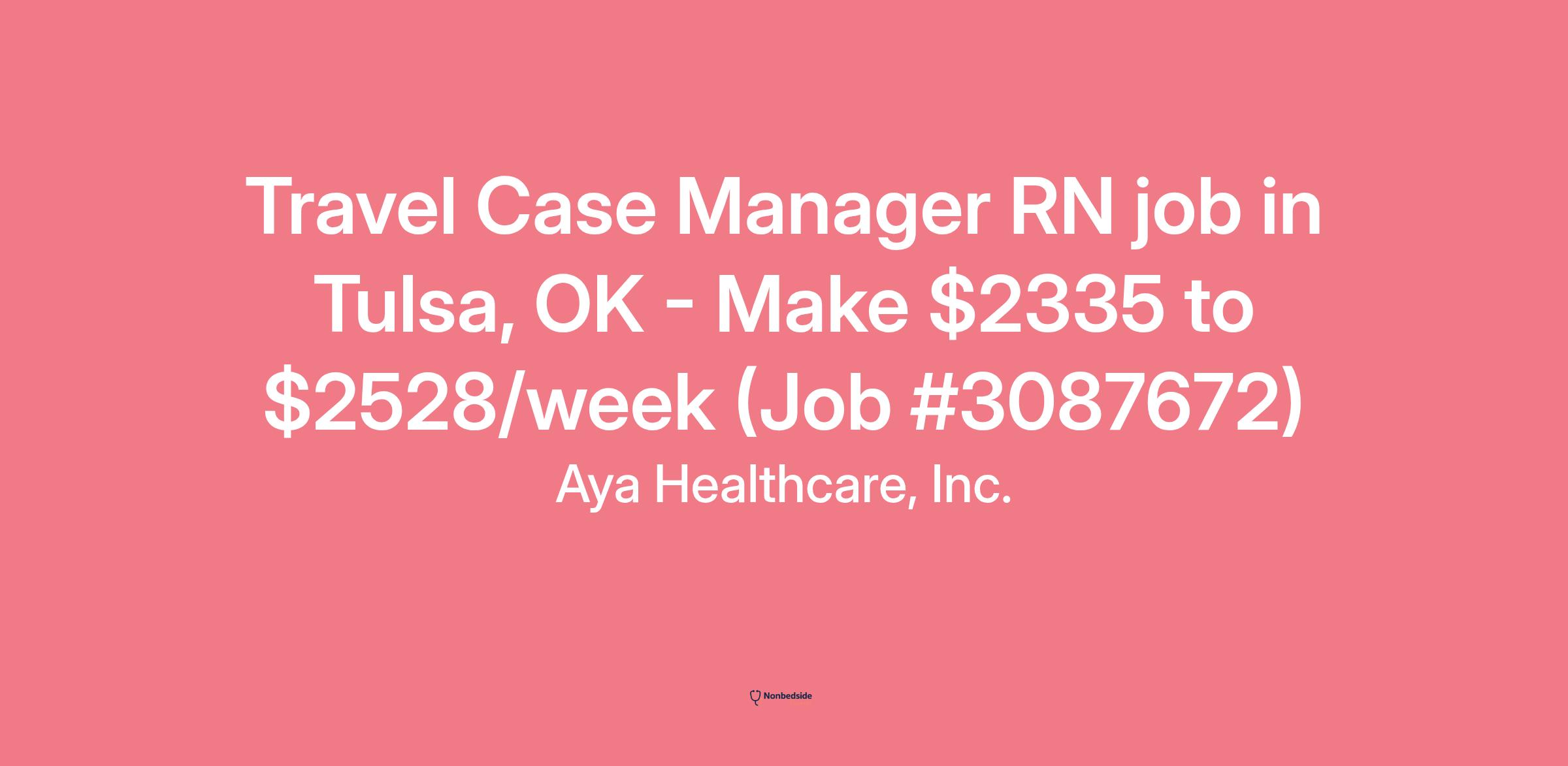 Aya Healthcare has an immediate opening for the following position: Case Manager Registered Nurse in Tulsa, OK.