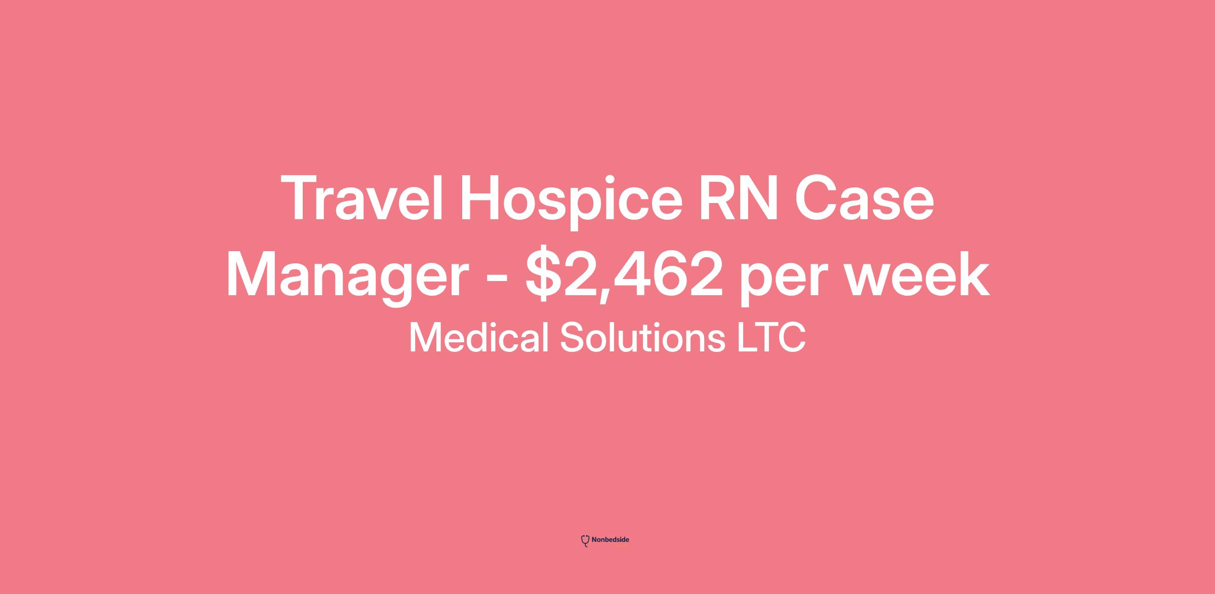 Medical Solutions LTC Job ID #996896. Pay package is based on 8 hour shifts and 40 hours per week (subject to confirmation) with tax-free stipend amount to be determined. Posted job title: Hospice