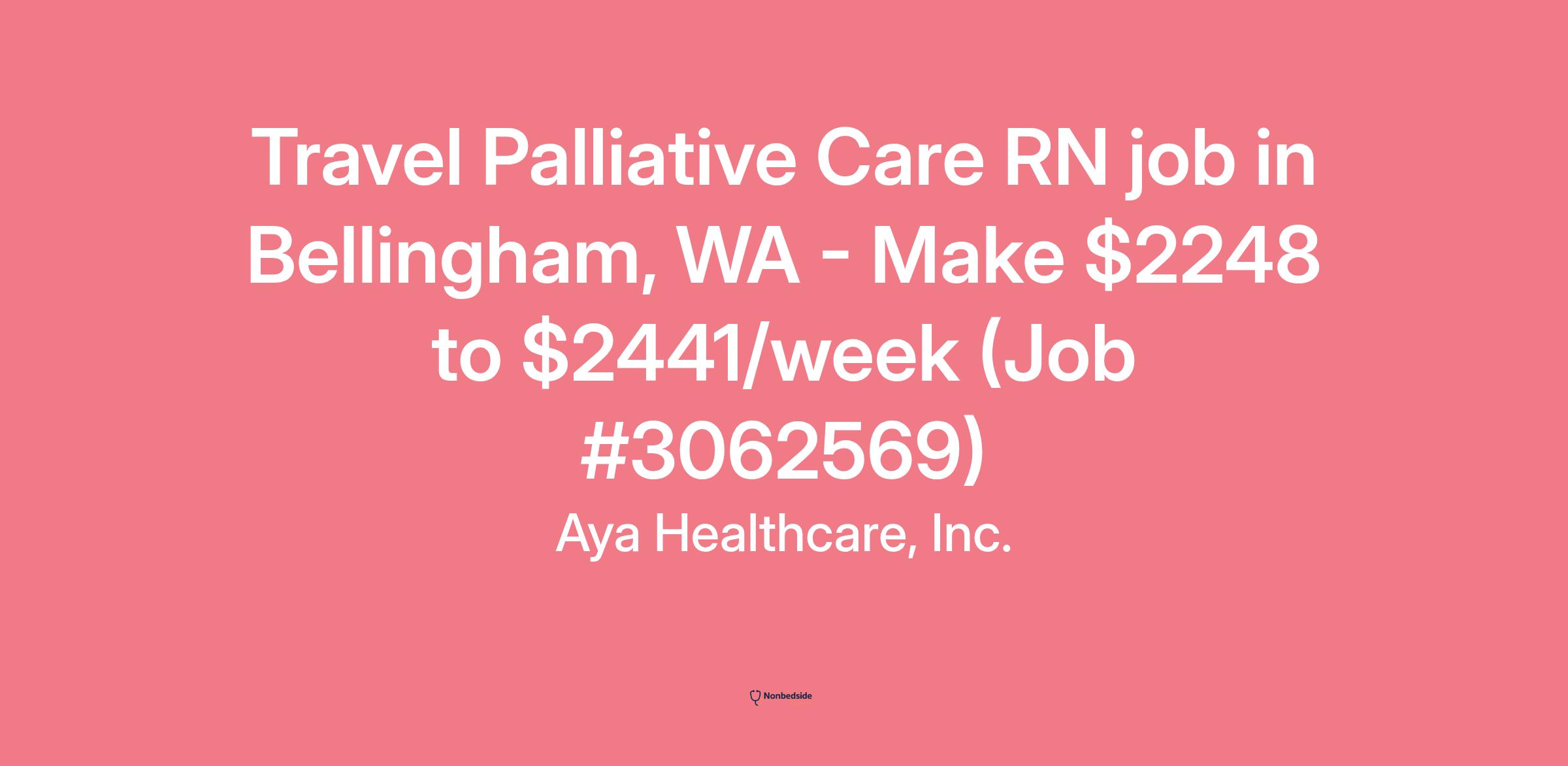 Aya Healthcare has an immediate opening for the following position: Palliative Care Registered Nurse in Bellingham, WA.