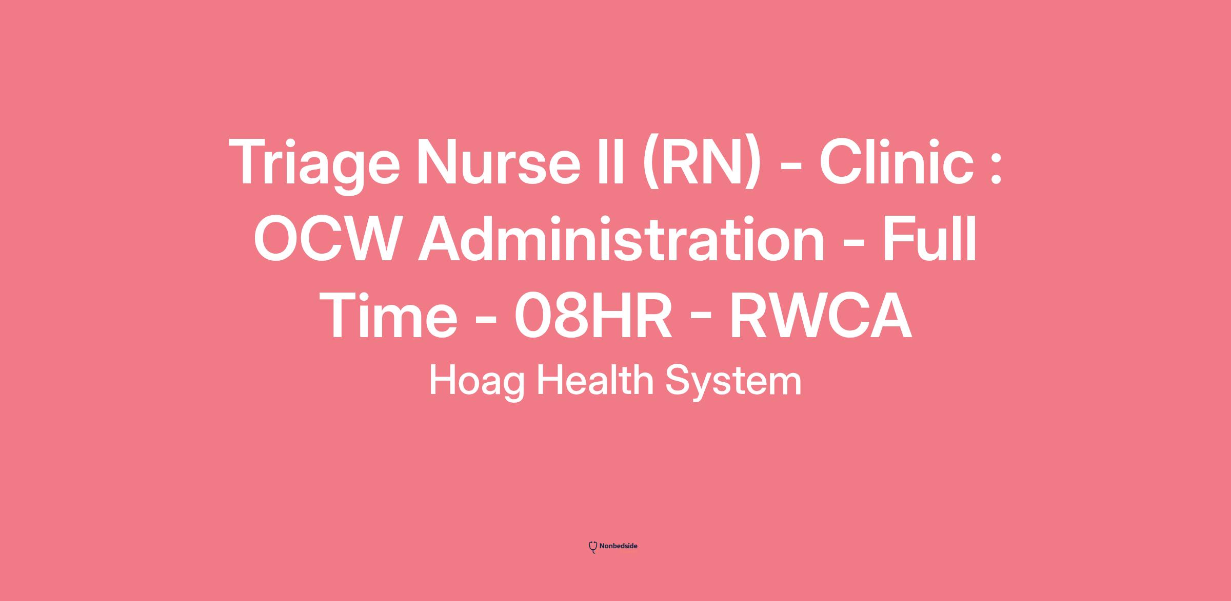Triage Nurse II (RN) - Clinic : OCW Administration - Full Time - 08HR - RWCA