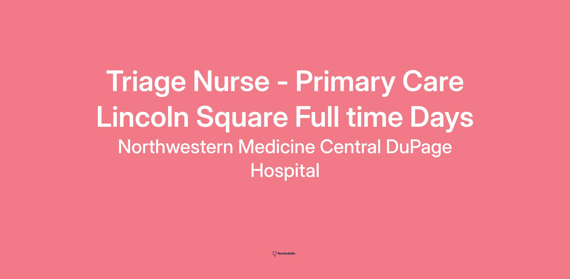 The Triage Nurse reflects the mission, vision, and values of Northwestern Memorial, adheres to the organization's Code of Ethics and Corporate Compliance Program, and complies with all relevant policies, procedures, guidelines and all other regulatory and accreditation standards.