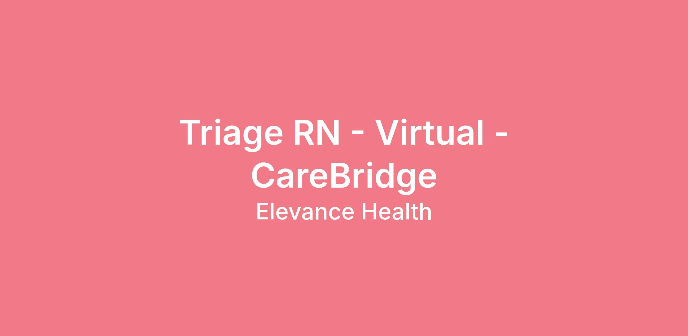 The Triage Nurse I - CareBridge is responsible for determining the appropriate Care Management program for members referred through internal and external sources and various data sources and reports. Utilizing department guidelines, completes triage process and applies established criteria to assign members to appropriate care management component. Deals with least complex cases having limited or no previous Triage care experience.