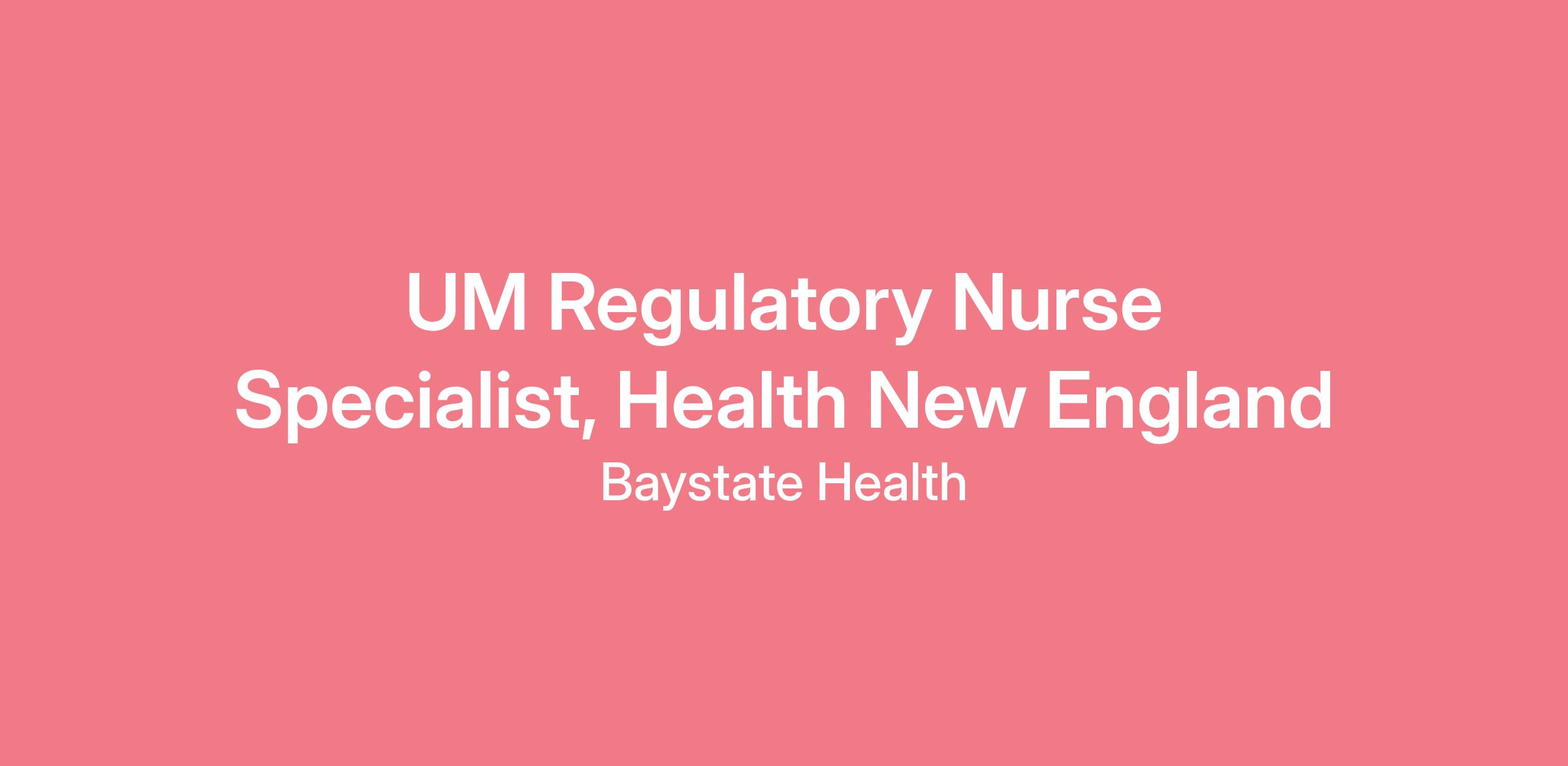 UM Regulatory Nurse Specialist - Baystate Health, Health New England