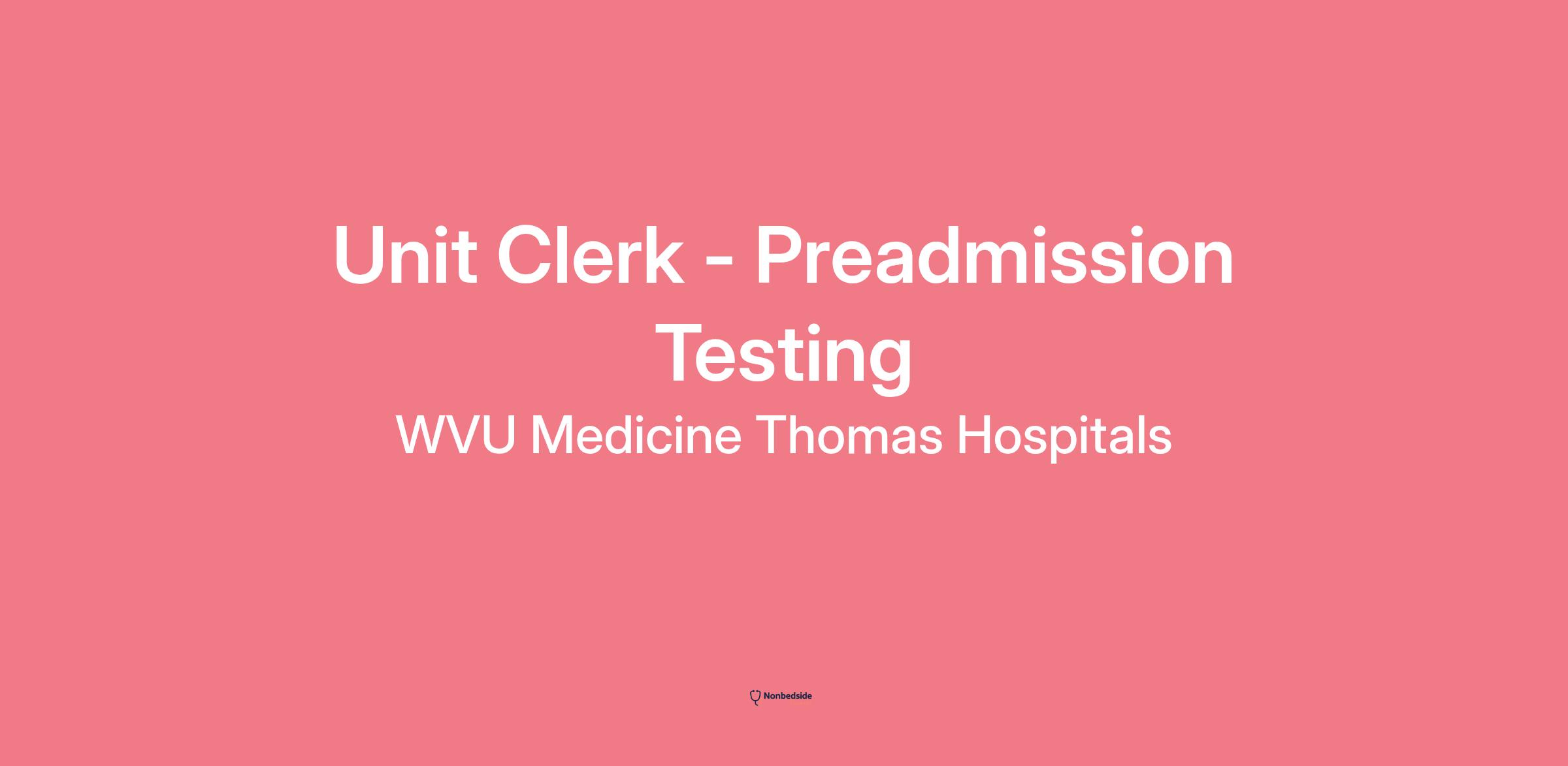 Join to apply for the Unit Clerk - Preadmission Testing role at WVU Medicine Thomas Hospitals