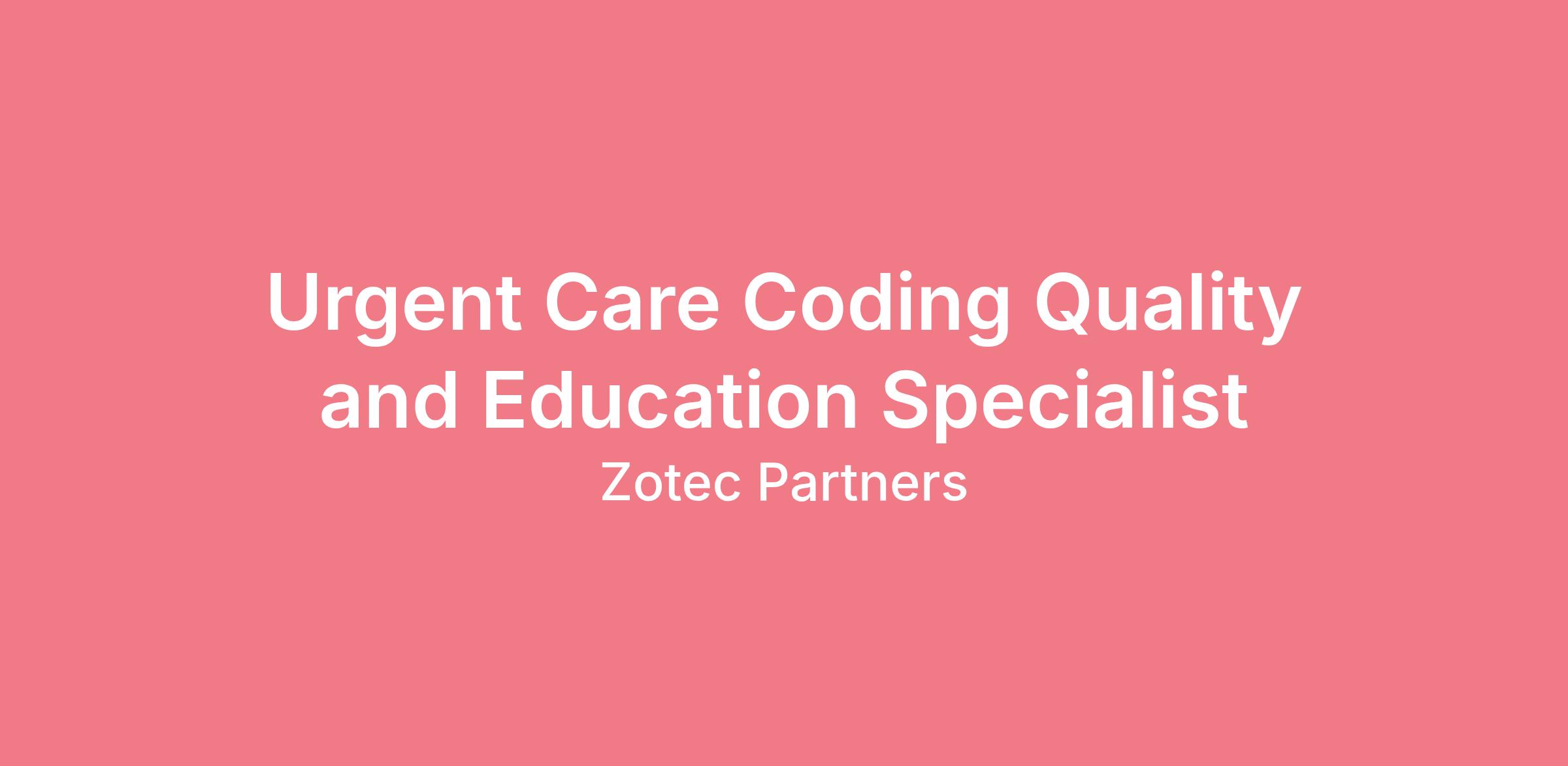 Urgent Care Coding Quality and Education Specialist to join us. This is a remote position.