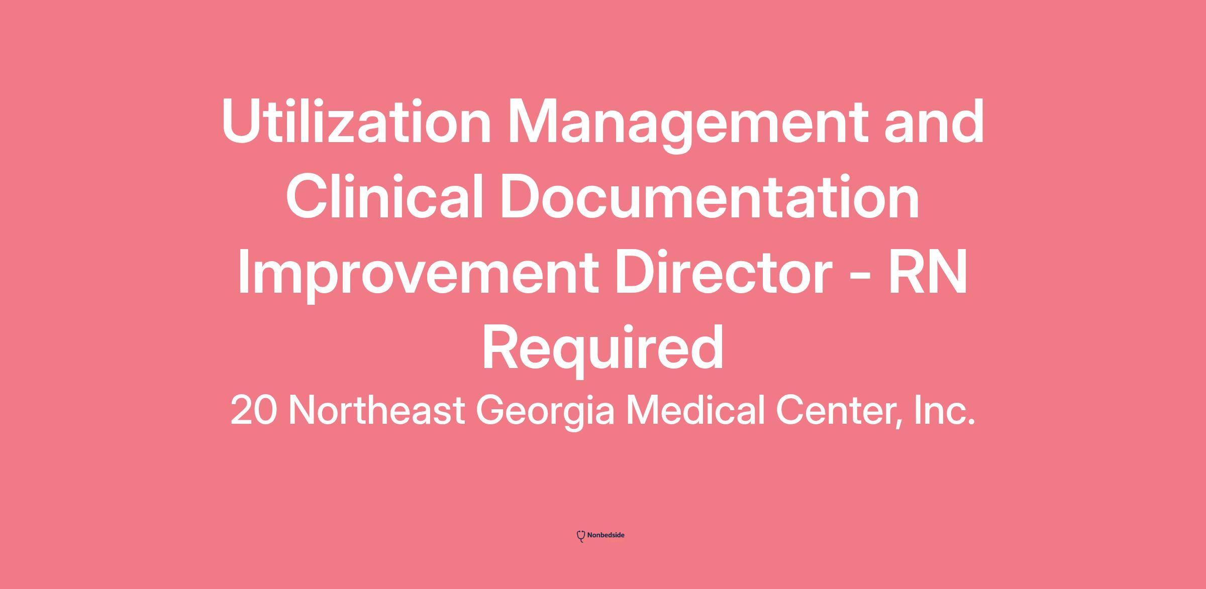 Utilization Management and Clinical Documentation Improvement Director - RN Required page is loaded Utilization Management and Clinical Documentation Improvement Director - RN Required Apply locations Gainesville, GA time type Full time posted on Posted 30+ Days Ago job requisition id R20509 Job Category: