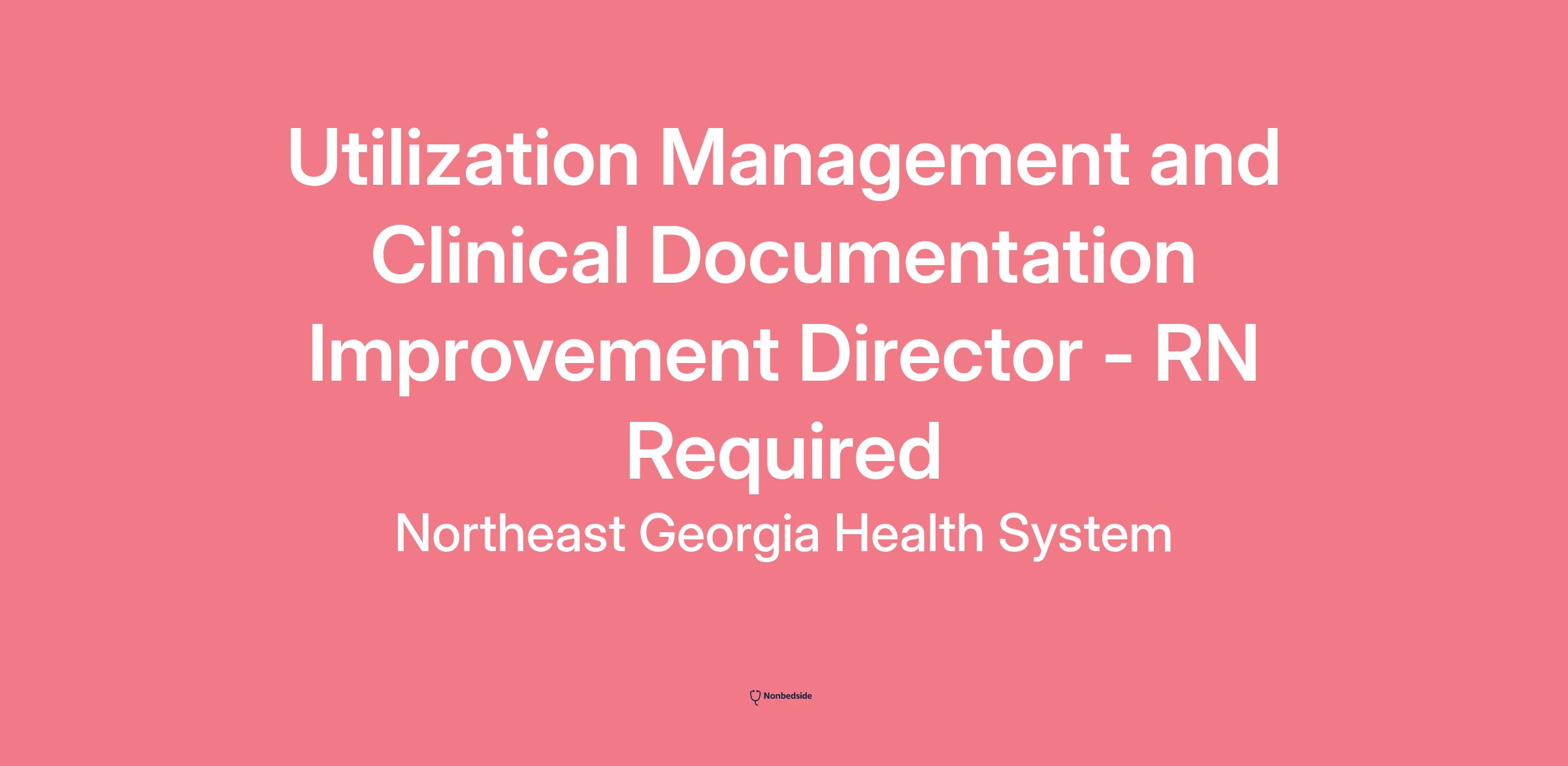 Job Summary The Director of Utilization Management (UM) and Clinical Documentation Improvement (CDI) is responsible for leading and managing the Utilization Management (UM) and Clinical Documentation Improvement (CDI) functions at Northeast Georgia Medical Center. This position plays a critical role in ensuring documentation accuracy, optimizing reimbursement, minimizing denials, improving case mix index (CMI), and ensuring appropriate utilization of hospital resources. The Director works collaboratively with hospital leadership, physicians, case management, finance, and compliance teams to enhance quality reporting, patient outcomes, and financial integrity. This role serves as a key liaison between clinical and financial operations, ensuring a seamless integration of documentation integrity with utilization management to drive efficiency, compliance, and revenue cycle optimization.