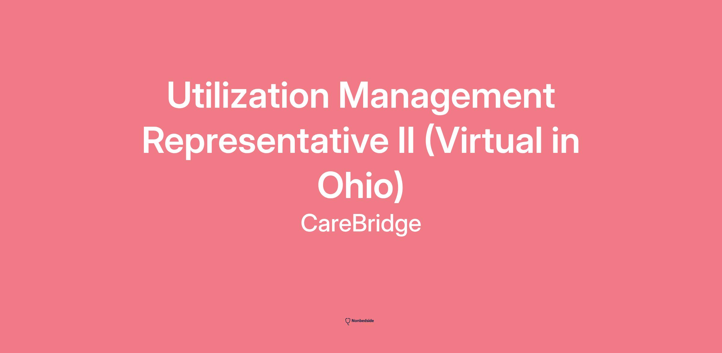 Utilization Management Representative II (Virtual in Ohio) Join to apply for the Utilization Management Representative II (Virtual in Ohio) role at CareBridge