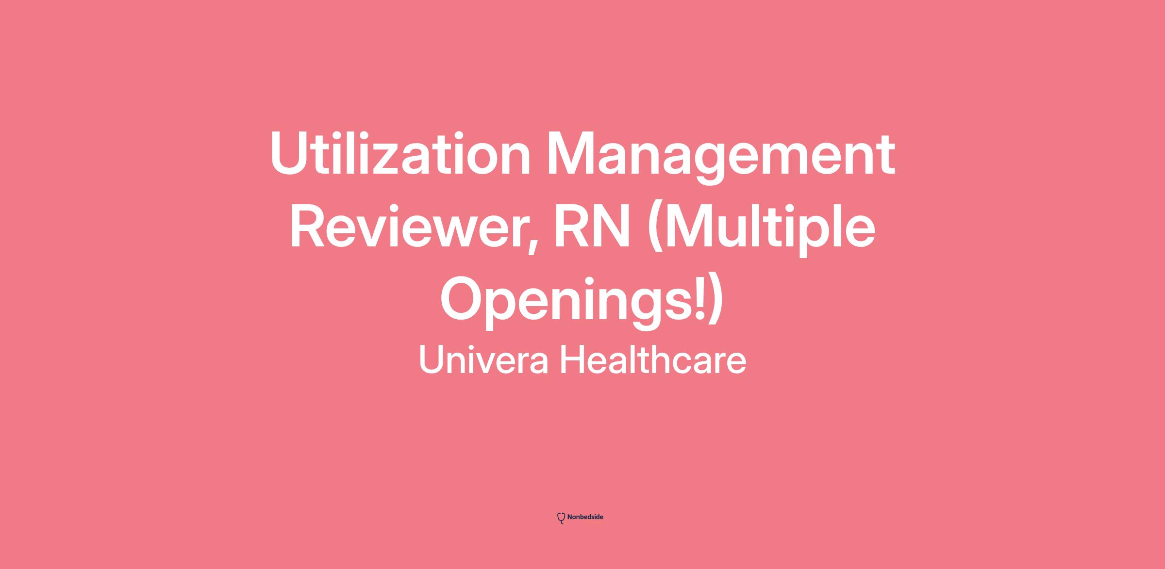Join to apply for the Utilization Manager Reviewer, RN (Multiple Openings!) role at Univera Healthcare