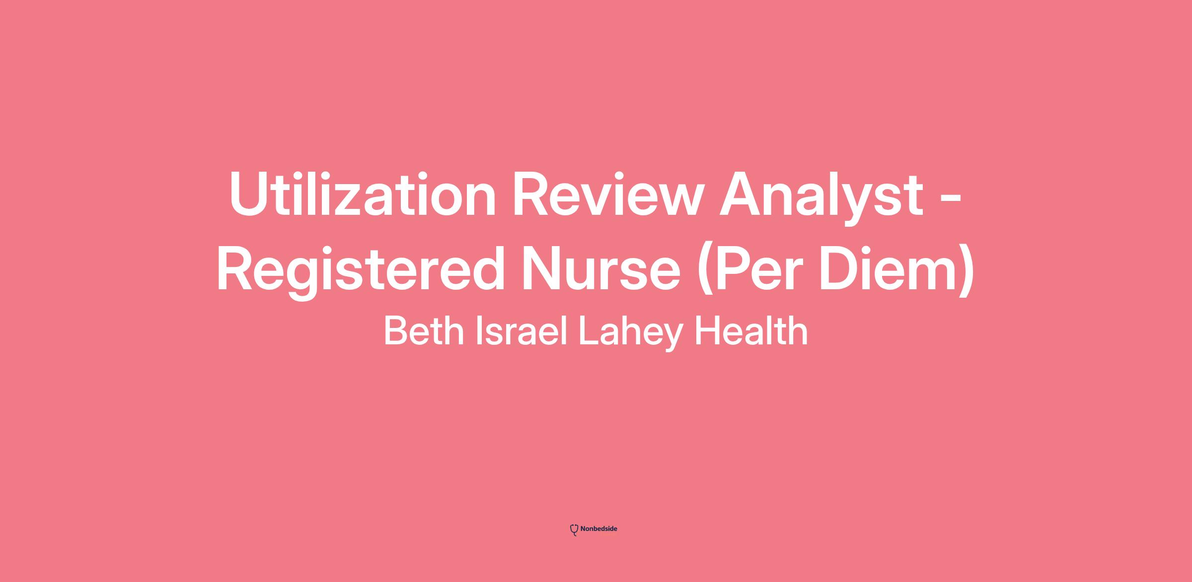Apply for the Utilization Review Analyst - Registered Nurse (Per Diem) role at Beth Israel Lahey Health .
