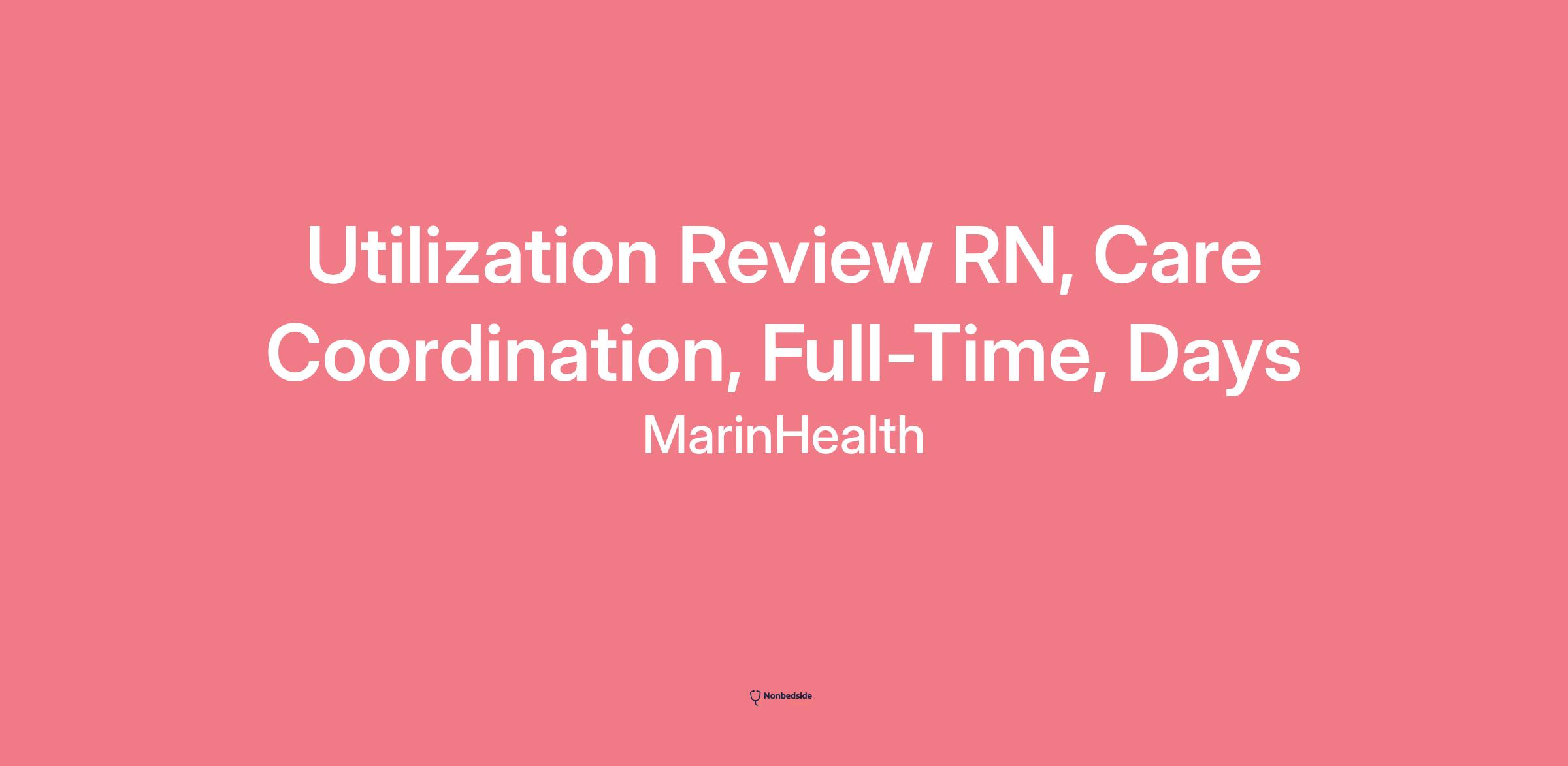 Utilization Review RN, Care Coordination, Full-Time, Days Locations: Greenbrae, CA