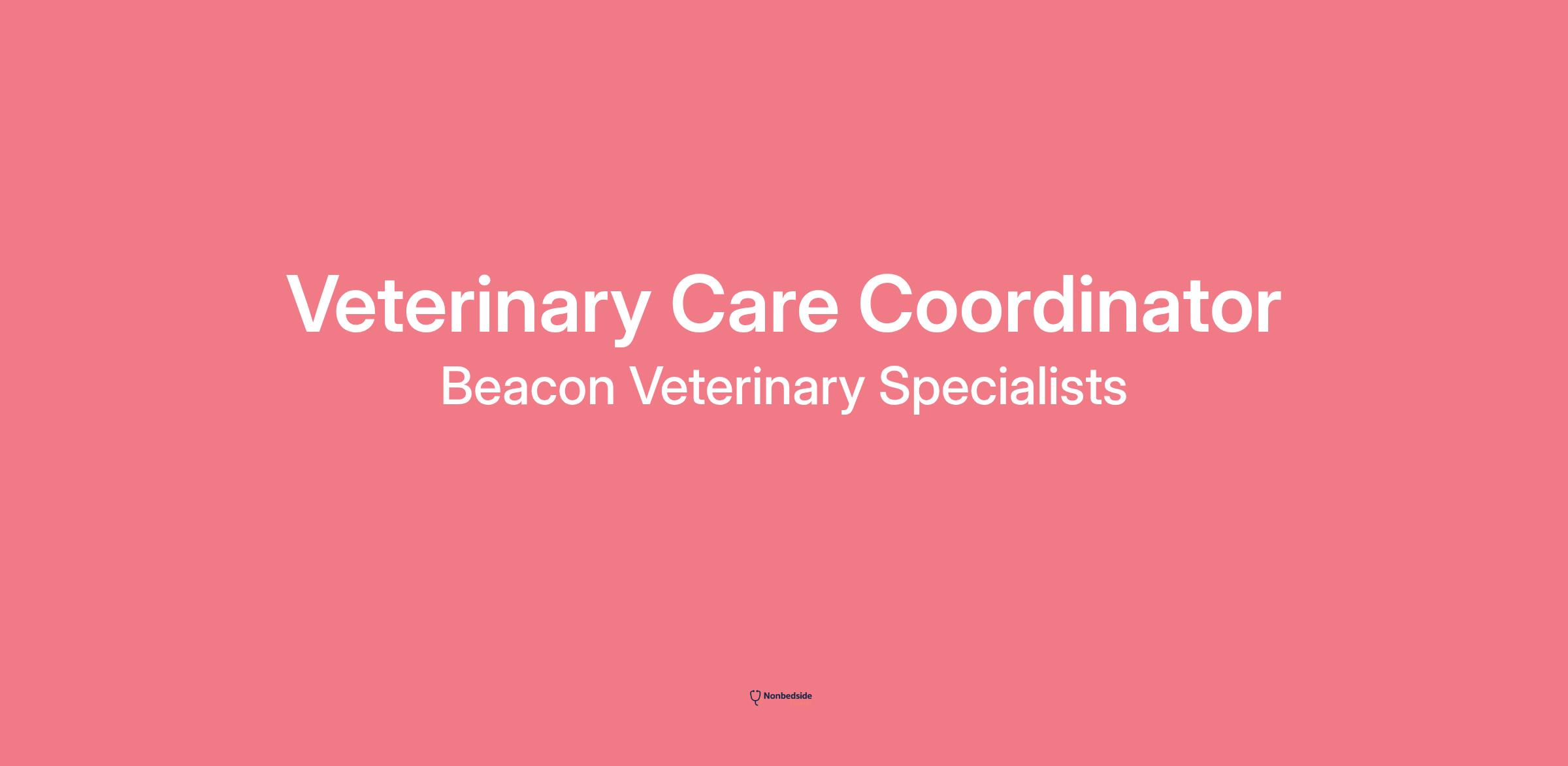 Beacon Veterinary Specialists is seeking a remote Veterinary Care Coordinator (VCC) to provide essential support for our specialists and clients. As a VCC, you’ll ensure clients receive timely, compassionate communication, and that care is coordinated seamlessly between doctors, clients, and referring veterinarians.