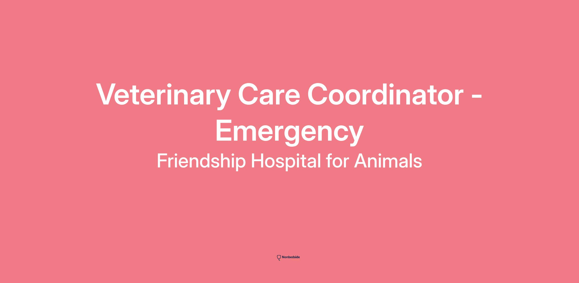 Friendship Hospital for Animals, a leading AAHA- accredited hospital located in Washington D.C. is seeking composed and compassionate Emergency/Critical Care (ECC) Coordinators to join our dynamic team. If you are detail oriented and love the adrenaline rush of the ER – we’d love to meet you!
