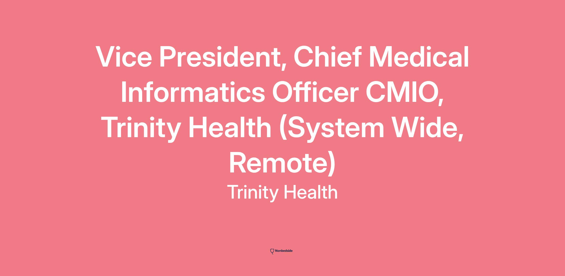 Position Title Vice President, Chief Medical Informatics Officer (CMIO) — Trinity Health (System Wide, Remote)