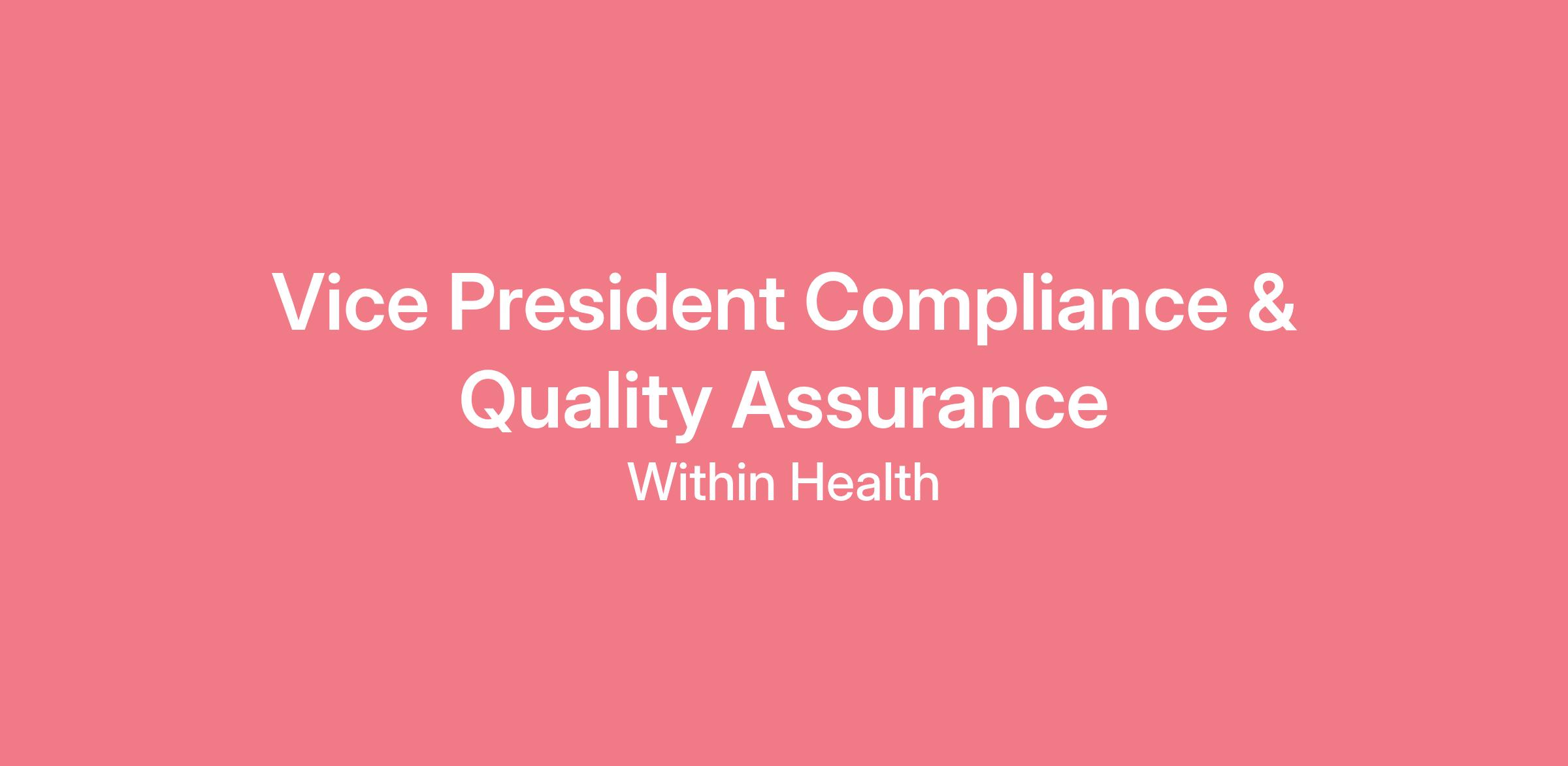 The VP of Compliance and Quality Assurance leads strategic initiatives to ensure Within Health meets all legal, regulatory and internal quality standards, overseeing quality management, risk management, audits, policy development, training, and regulatory reporting. This leader works closely with other senior leadership team members to integrate compliance into all facets of the organization and fosters a quality - focused culture.