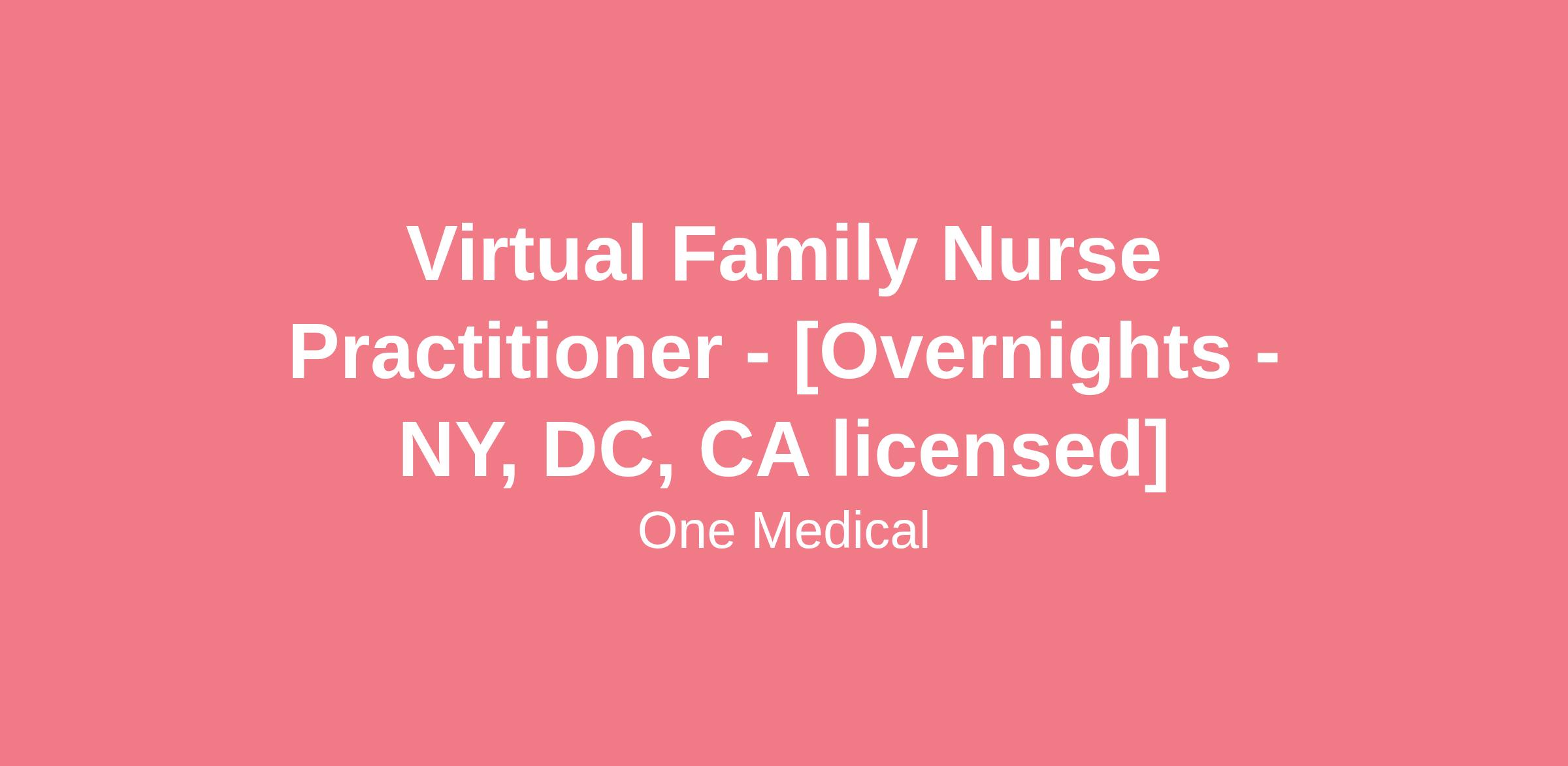 Virtual Family Nurse Practitioner - [Overnights - NY, DC, CA licensed]