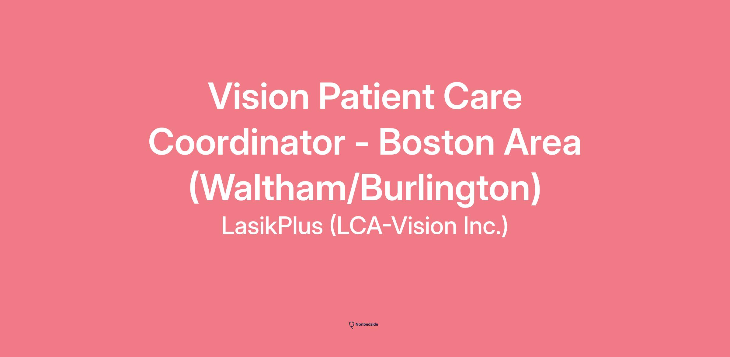 Vision Patient Care Coordinator - Boston Area (Waltham/Burlington) Join us at LasikPlus (LCA-Vision Inc.) as a Vision Patient Care Coordinator in the Boston area, specifically in Waltham and Burlington.