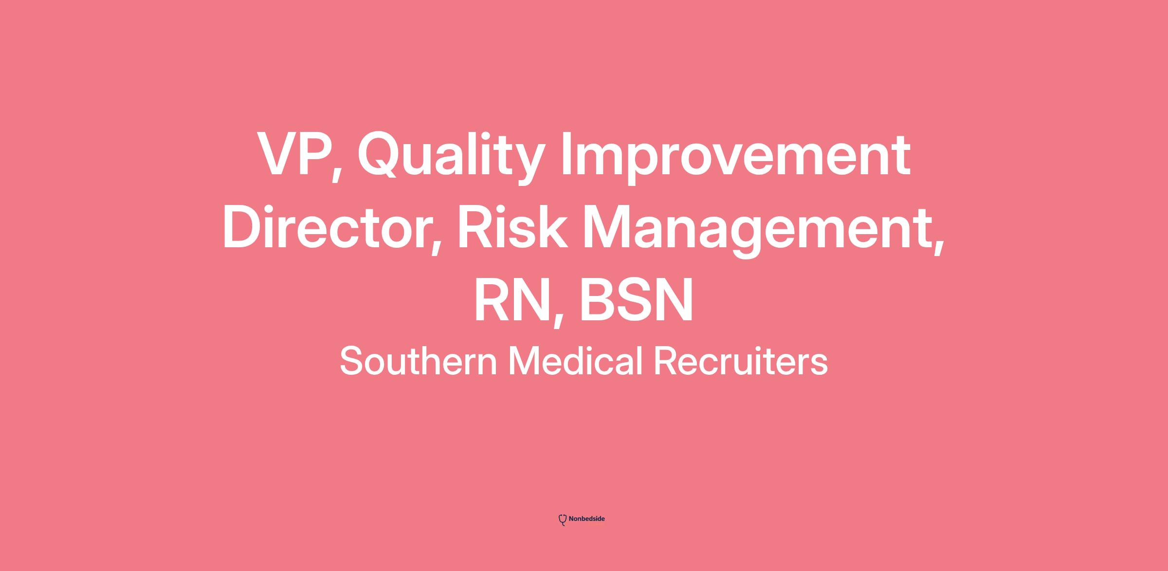 VP, Quality, Risk Management candidate needed for large healthcare organization.