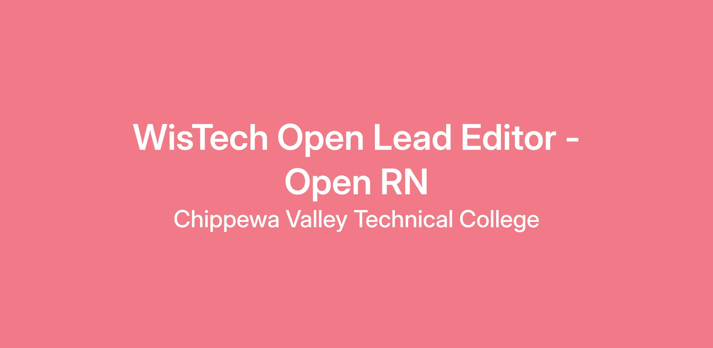 The WisTech Open Lead Editor - Open RN supports the efforts of open educational resources (OER) across the Wisconsin Technical College System (WTCS). For more information about WisTech Open visit https://www.cvtc.edu/grants/wistech