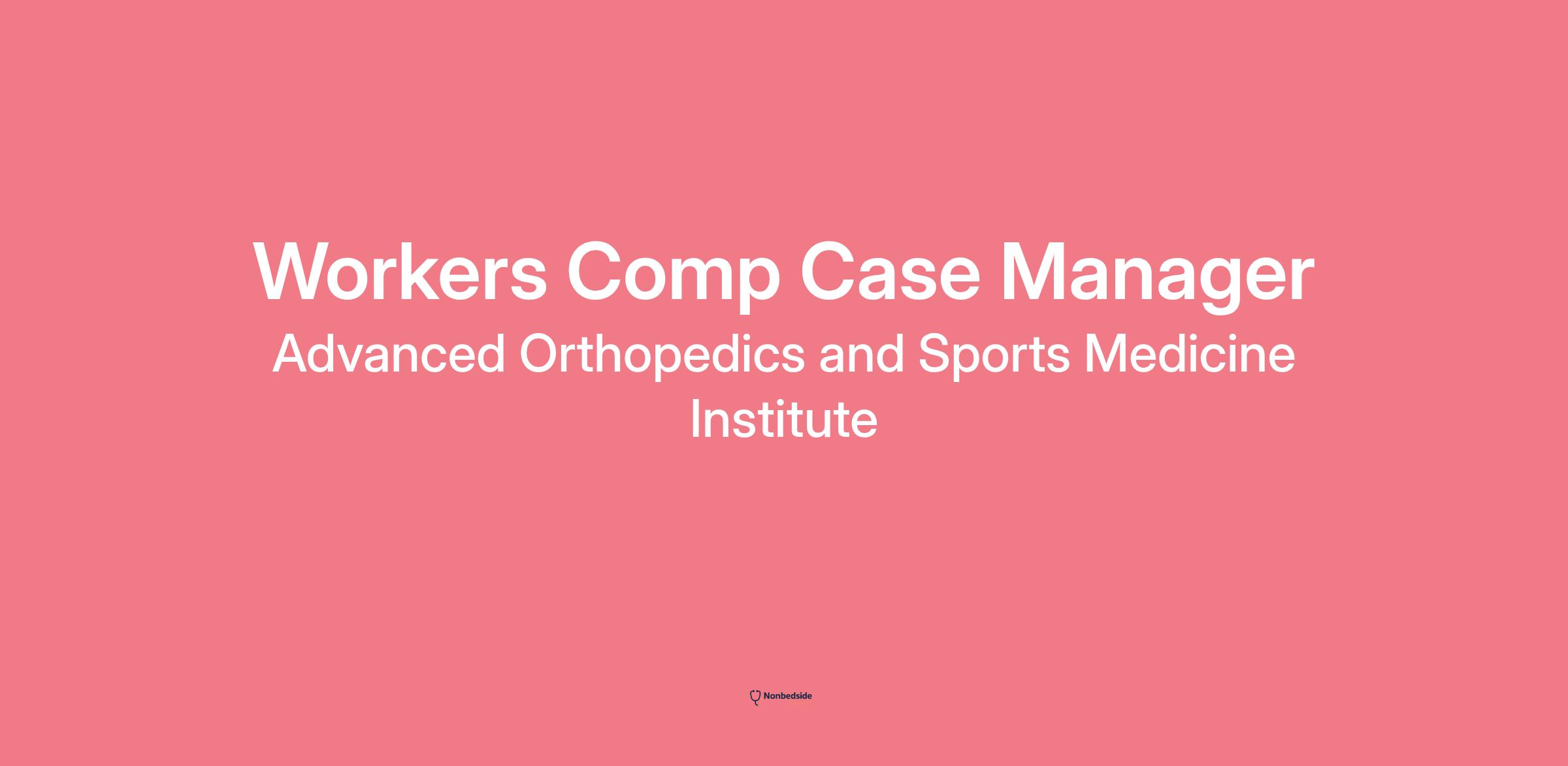 Director of Human Resources at Advanced Orthopedics and Sports Medicine Institute The Workers' Compensation Case Manager will be responsible for managing the medical care and treatment of injured workers who are receiving workers' compensation benefits. This includes coordinating care with physicians, specialists, and other medical professionals, as well as communicating with insurance carriers, employers, and attorneys as needed.