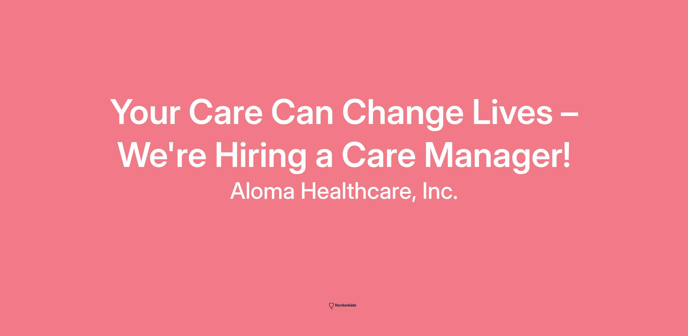 Overview Aloma Healthcare, Inc. seeks a talented and experienced Care Manager to join us for a full-time role as an individual contributor. The Care Manager will be responsible for leading patient care teams and ensuring provision of quality healthcare services to all patients. The Care Manager must possess excellent communication, problem-solving, and customer service skills, as well as the ability to remain organized and multitask.